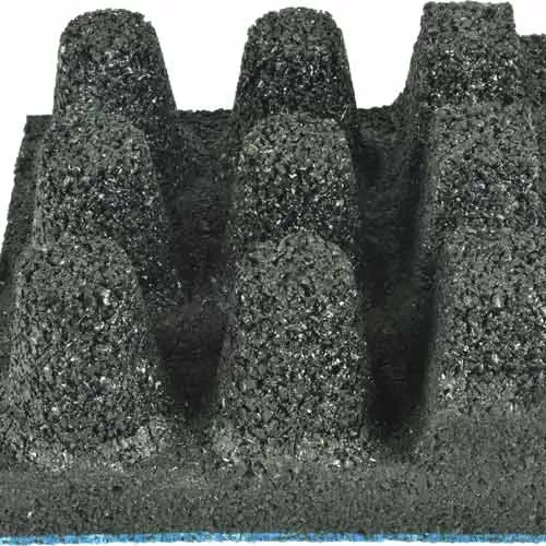 Installers will make use of the Quad Blok installation system to lay out these tiles. This system involves placing a Quad Blok piece on the subfloor and then inserting the cylindrical pegs on the bottom of each rubber tile into the perforations on the Quad Blok base piece.