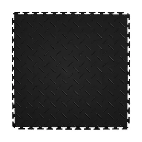 Choose this soft PVC tile for the diamond top surface pattern. Use it for a garage floor or warehouse floor, with its ease of installation without needing glue or other adhesives. As an added bonus, optional border strips are available.