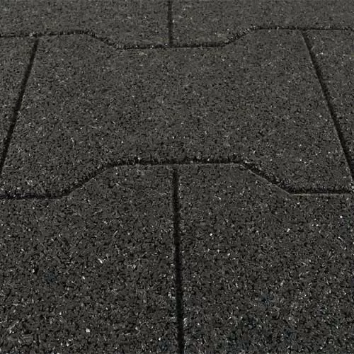 The manufacturer etches the dog bone pattern directly into the rubber, so installers do not have to attempt to properly create the tricky layout of actual dog bone shaped bricks or tiles.