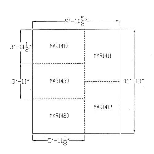 After interlock, the assembled dimensions of the Horse Stall Mats 10×12 Ft Kit is 9 Ft 10-5/8 Inches x 11 Ft 10 Inches.