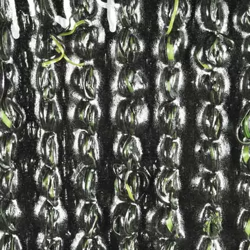 The primary backing is a polypropylene plastic that provides the anchor for the individual yarns of the astroturf yard, holding them in place tightly.