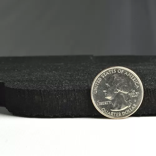 The tiles measure 1/2 inches in thickness. The manufacturer follows tight tolerances, guaranteeing that each tile’s thickness measurement will be plus/minus 1/16 inches from the expected thickness.