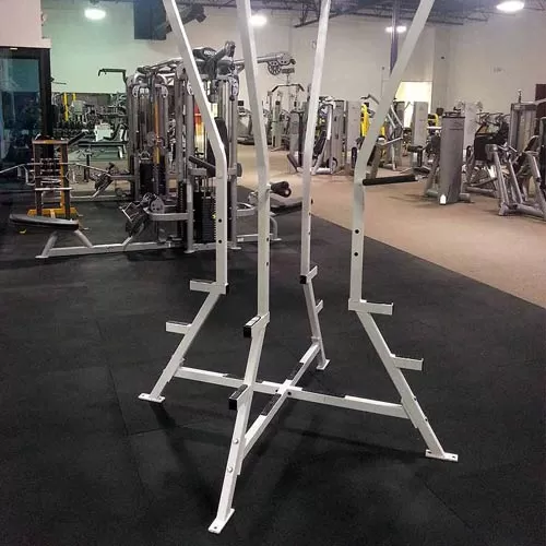 Another consideration is how heavy your weight racks will be. If you will have quite a few weights stored on the racks, you may notice indentations in the original flooring over time. Some of our customers choose to lay out one of these black rubber mats in a corner of the room and use the area as a storage location for all of their weights. This will keep the weights organized nicely without having to worry about whether the collection of weights is causing long-term damage to your original floor.
